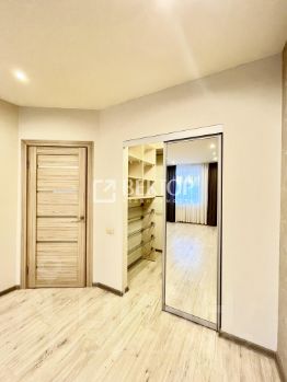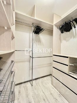В комнате оборудована вместительная гардеробная .