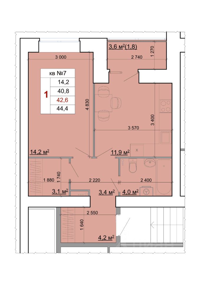 42,6 м²