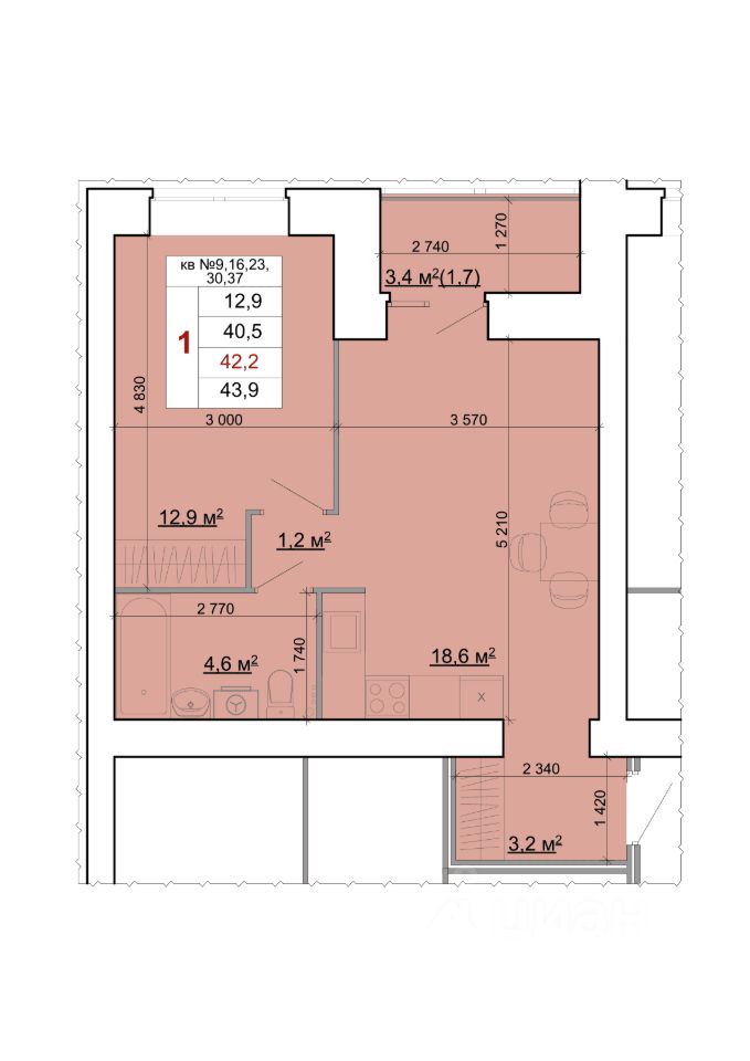 42,2 м²