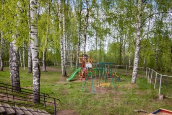 4. На территории дома располагается шикарная детская площадка в окружении многолетних берез.