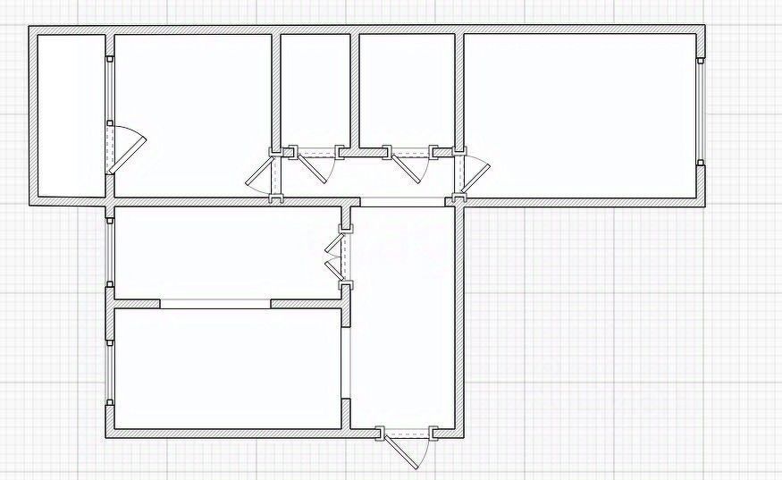 Планировка: кухня-гостиная + 2 изолированные комнаты.