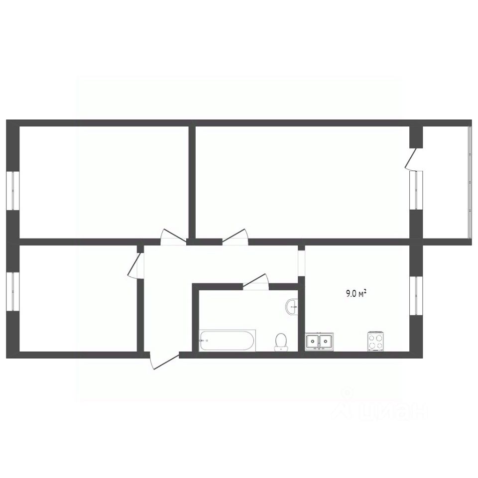 Общая площадь квартиры 74 кв. м.