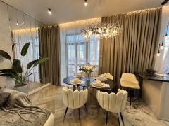 В квартире остается вся мебель: кухонный гарнитур со встроенной варочной панелью, новой итальянской газовой колонкой , духовым шкафом, встроенной микроволновой печью, вытяжкой, холодильником, посудомоечной машиной, кухонным столом и стульями. Встроенные современные шкафы в спальне, детской, коридоре, зале. Кровать с мягкими панелями, диван, телевизоры, тумбочки, туалетный столик. Гардеробная, стильные тумбы , вешалка, обувница, шторы, встроенные зеркала со светодиодной подсветкой, и т. д.