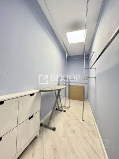В спальне оборудована вместительная гардеробная .