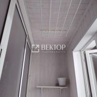 Лоджия отделана деревянной вагонкой (с внутренней и внешней стороны), что позволяет организовать уютное место для отдыха.