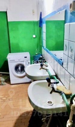 В комнате установлена раковина с водой и стиральная машина подключена .