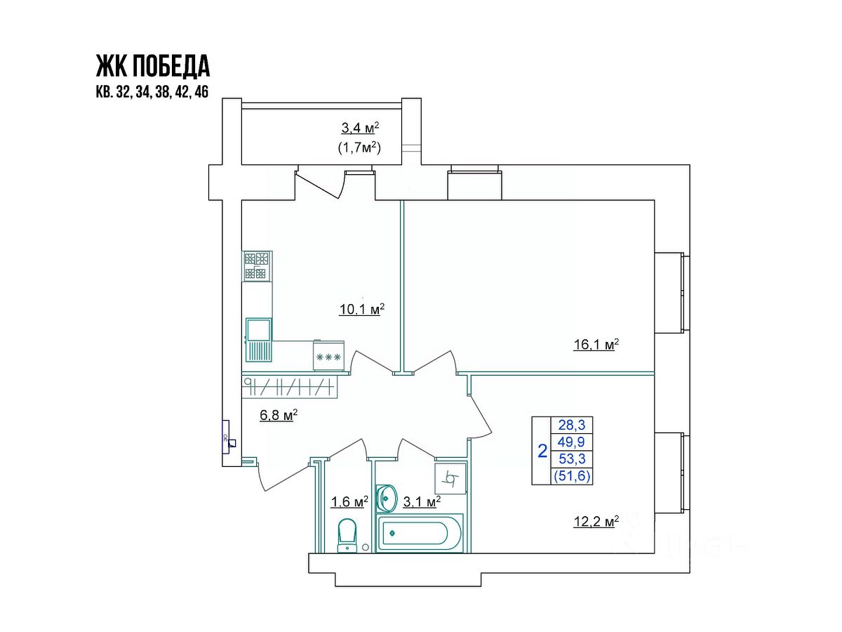 51,6 м²