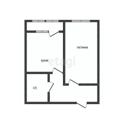 Квартира расположена на 5 этаже, общая площадь 37,7 кв.м.
