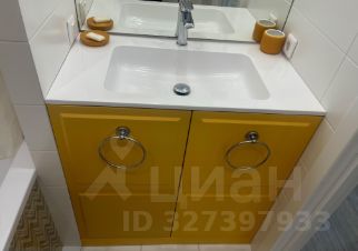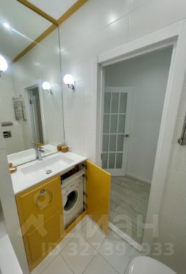 сан узлом (площадью 3,4 м с теплым кафельным полом, стильной встроенной мебелью Наша Марка", внутри тумбы под раковиной расположена стиральная машина Саndy).