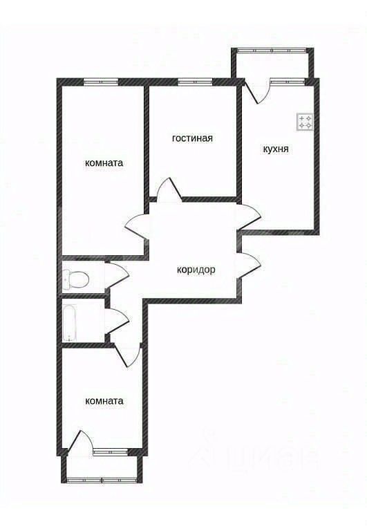 Три раздельные комнаты, каждая имеет отдельное окно, что создаёт дополнительное освещение и свободу планирования интерьера Просторный квадратной формы коридор оформлен декоративной штукатуркой, визуально расширяя пространство