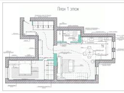 1 уровень: кухня, гостинная, санузел, спальня