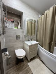 В квартире выполнен современный ремонт из качественных материалов, вся встраиваемая мебель и техника остается новому собственнику. Благодаря большим окнам в квартире всегда много света.