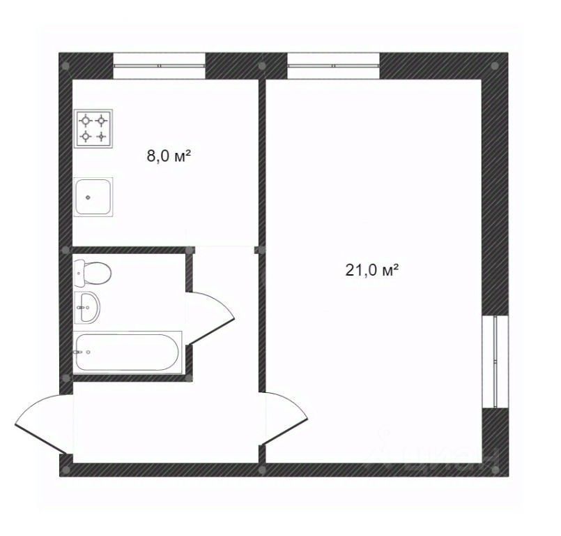 Общая площадь квартиры 32 кв. м.