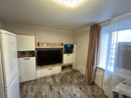 В квартире сделан ремонт, полностью заменена электропроводка, установлено пластиковое окно, натяжные потолки, на кухне на стенах декоративная штукатурка, в комнате - обои, на полу - ламинат, санузел совмещенный в кафеле.