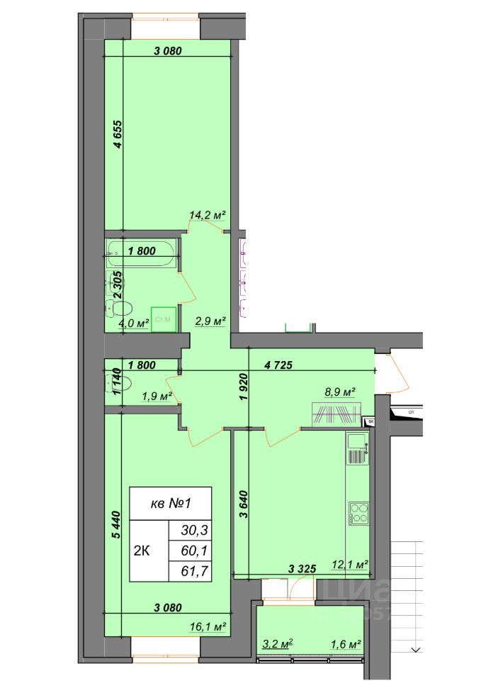Продаётся 2-комнатная квартира в строящемся доме (Дом 1), срок сдачи: IV-кв. 2027, общей площадью 61.7 кв.м., на 2 этаже. Новый жилой комплекс "Добро" от застройщика "Мегаполис" расположен по адресу: Костромской район, Караваевское сельское поселение, посёлок Караваево, ул. Учебный Городок