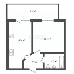Жилая площадь составляет 13,3 кв.м., кухня 13,2 кв.м.