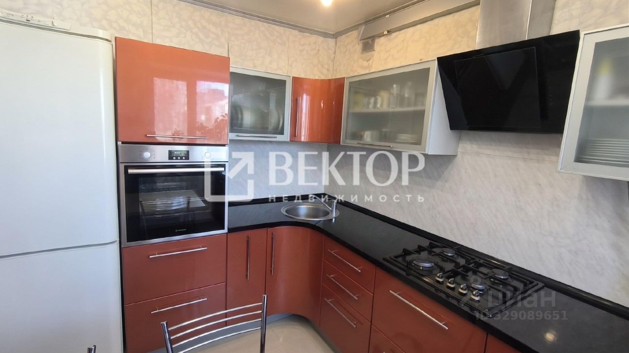 На кухне установлен качественный кухонный гарнитур.