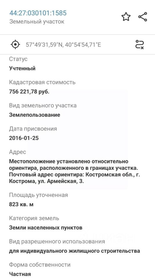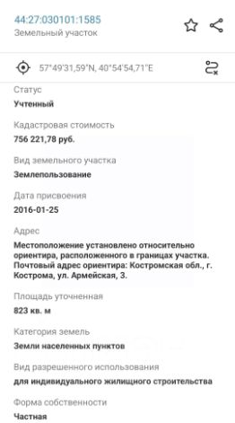 Кадастр. номер 44:27:030101:1585