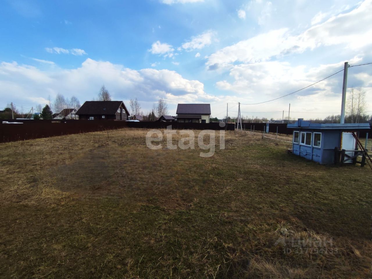 Земельный участок 9 соток выровнен, огорожен забором из профнастила. Со стороны главного фасада выполнен бетонный ленточный фундамент под капитальный забор.