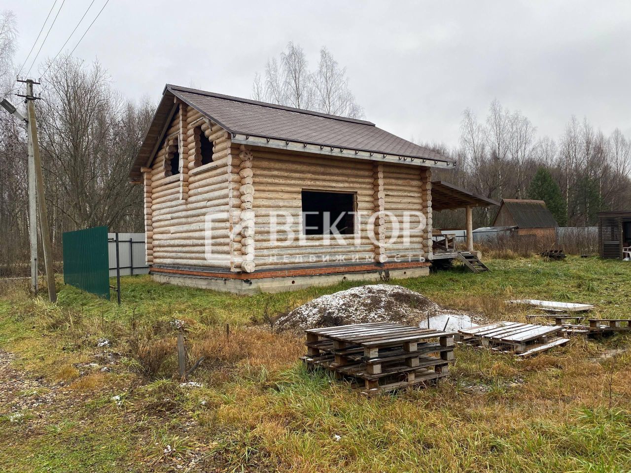 На участке свежий дом, выполнен из качественного сруба размером 8х8 метров и дополнен просторной верандой размером 3,5х8 метров. Дом под крышей с мягкой кровлей, которая не только выглядит эстетично, но и надёжно защищает от непогоды. Снаружи дом ошлифован и покрашен. На участке имеется скважина с водой и электричество. Кроме того, на участке расположен навес с новой мангальной зоной из красного кирпича.