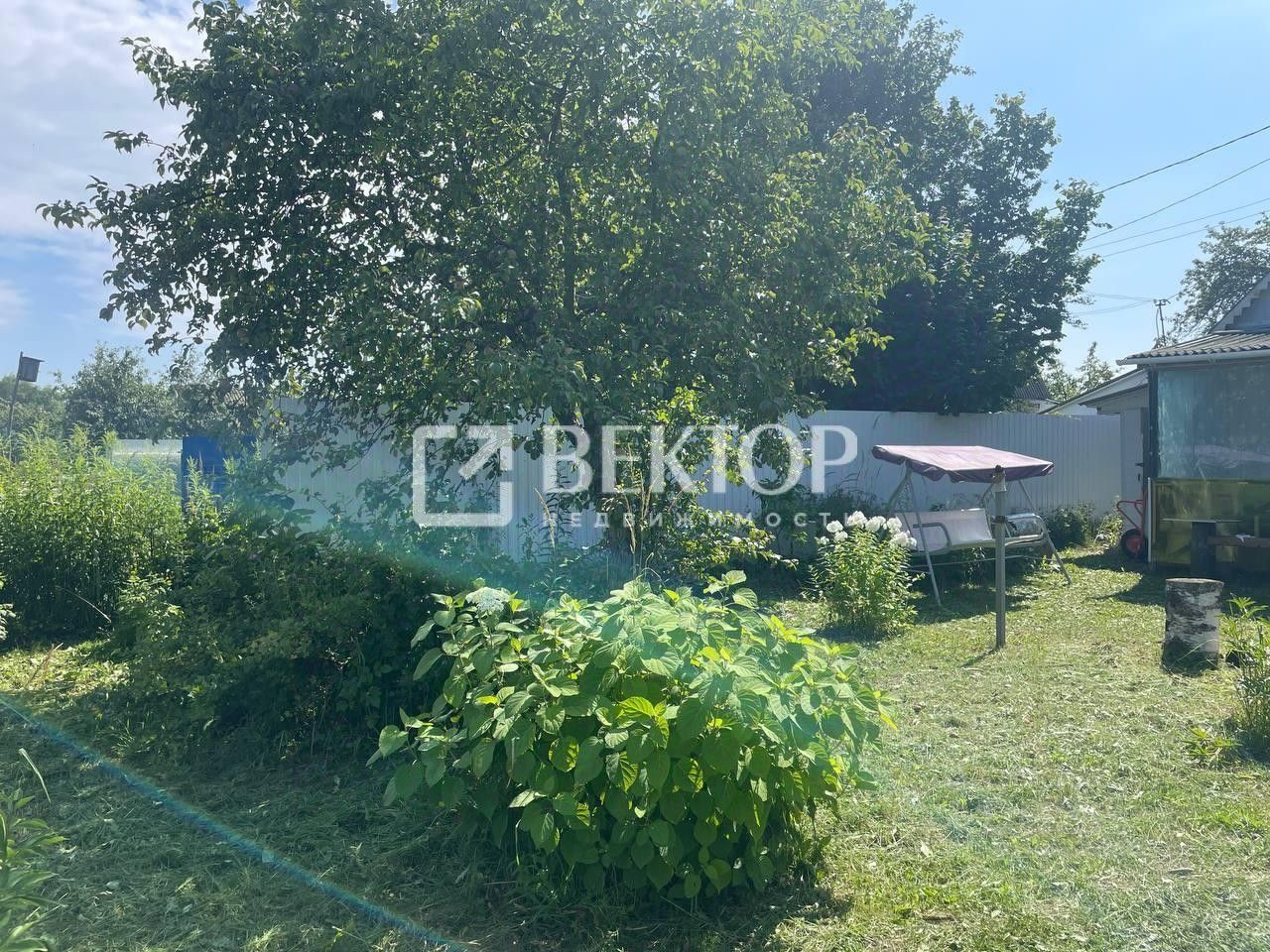 Участок ухожен: На территории растут кусты и плодово-ягодные деревья: яблони, груша, вишня и несколько видов ягод (малина, смородина, крыжовник).