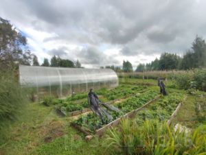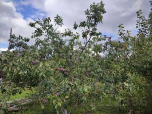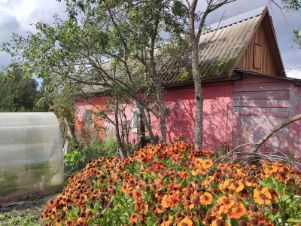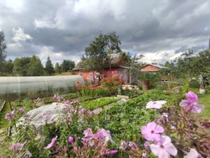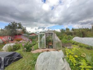 Инфраструктура участка развита: здесь присутствуют баня, летний домик для гостей, а также две теплицы из поликарбоната длиной 8 и 4 метра. Территория полностью освоена, высажены плодовые деревья (сливы, яблони) и кустарники (малина, смородина), разбиты многолетние цветники. Ключевым преимуществом является непосредственная близость к водоему, который можно использовать для купания, рыбалки и полива.