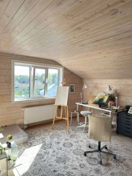 Уникальная изюминка: Две светлые, наполненные ароматом дерева комнаты из клееного бруса, пристроенные над гаражом. - Комфортный климат: сплит-системы на кухне и в одной из спален.
