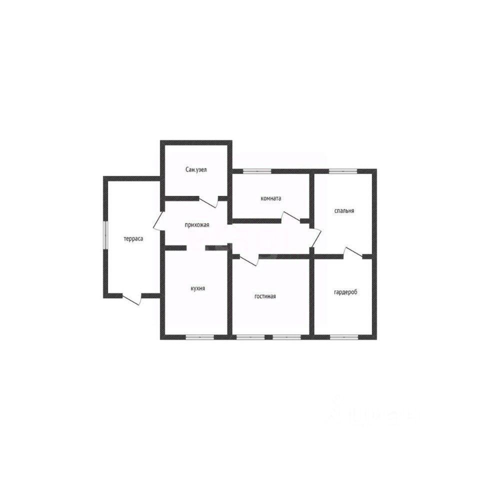 Внутри дома три изолированные комнаты и просторная кухня. Везде выполнен косметический ремонт, который был произведен два года назад. Натяжные потолки, на полу качественный ламинат, хорошие межкомнатные двери. В одной из комнат потрясающее место для хранения всех вещей - гардеробная.