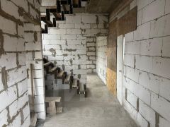 Коммуникации заведены в дом и подключены: газ, центральное водоснабжение, канализация септик, электричество. Крыша - мягкая черепица. По периметру всего 1 этажа смонтирован тёплый пол. Будет установлен лестничный каркас.