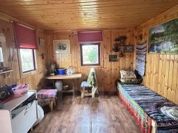На участке расположен одноэтажный, деревянный, уютный садовый дом площадью 12 кв.м., внутри отделан деревянной вагонкой. К дому пристроена пристройка для хранения садового инвентаря, оборудован санузел.