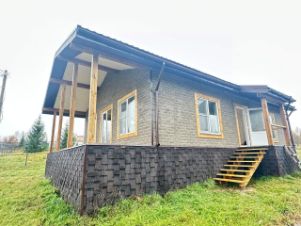 Дом 1-этажный, площадью 94,5 кв.м., из СИП-панелей с облицовкой современной фасадной плиткой хауберг под кирпич.