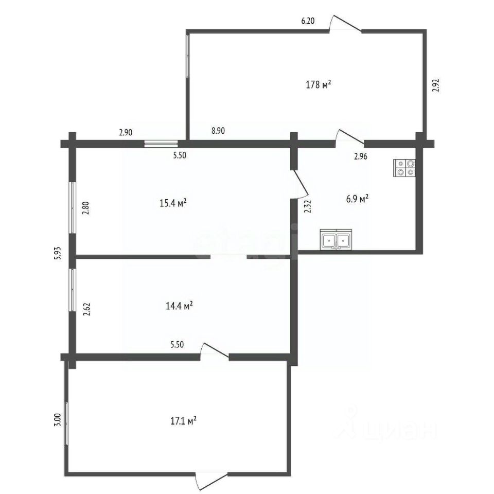Основное строение с тремя комнатами и кухней дополнено капитальной пристройкой из газосиликата, которую можно использовать как мастерскую, кабинет или зону для хранения.