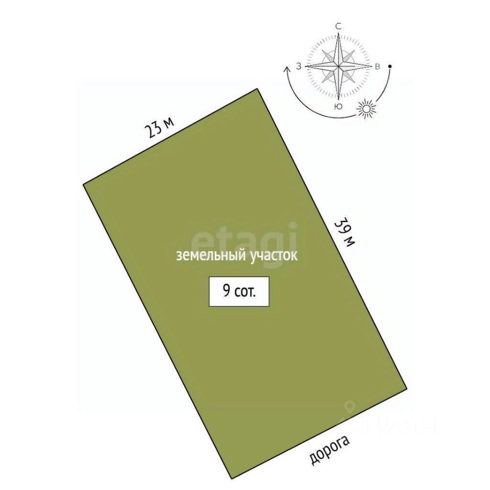 - Площадь 9 соток — достаточно места для вашего уютного дома и красивого сада.