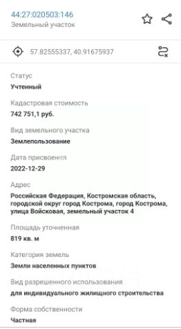Кадастровый номер 44:27:020503:146.