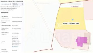 Кадастровые номера 44:07:022001:191 и 44:07:022001:192 ( продаются вместе)