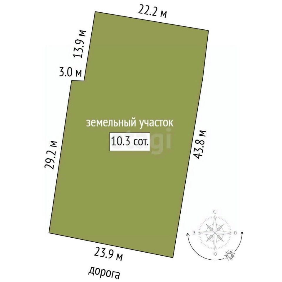 Площадь участка: Этот участок земли занимает внушительные 10,3 сотки, что предоставляет множество возможностей для строительства и благоустройства. Вы сможете реализовать свои идеи и создать идеальное пространство для жизни или бизнеса.