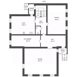 Планировка отличается рациональностью и масштабом: просторные комнаты, большая кухня-гостиная и подсобные помещения. Мансардный этаж предоставляет возможность обустроить дополнительную зону отдыха или рабочие кабинеты.