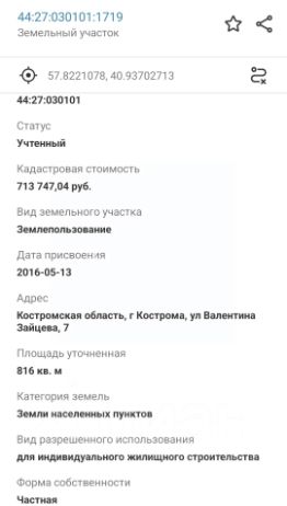 Кадастровый номер 44:27:030101:1719.