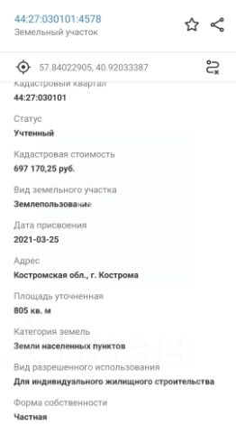 Кадастровый номер 44:27:030101:4578.