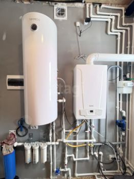 Своя котельная с котлом Baxi (известная надежность) и бойлером Termica на 120 л — горячая вода есть всегда, и вы не зависите от отключений. Газ уже в доме — тепло будет стоить копейки.