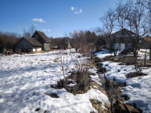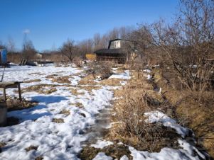 На участке имеется два домика, один из их является кухней. При желании эти домики можно объеденить в один. Второй домик имеет два этажа по комнате на каждлом этаже. Забор сетка рабица по передней части участка.