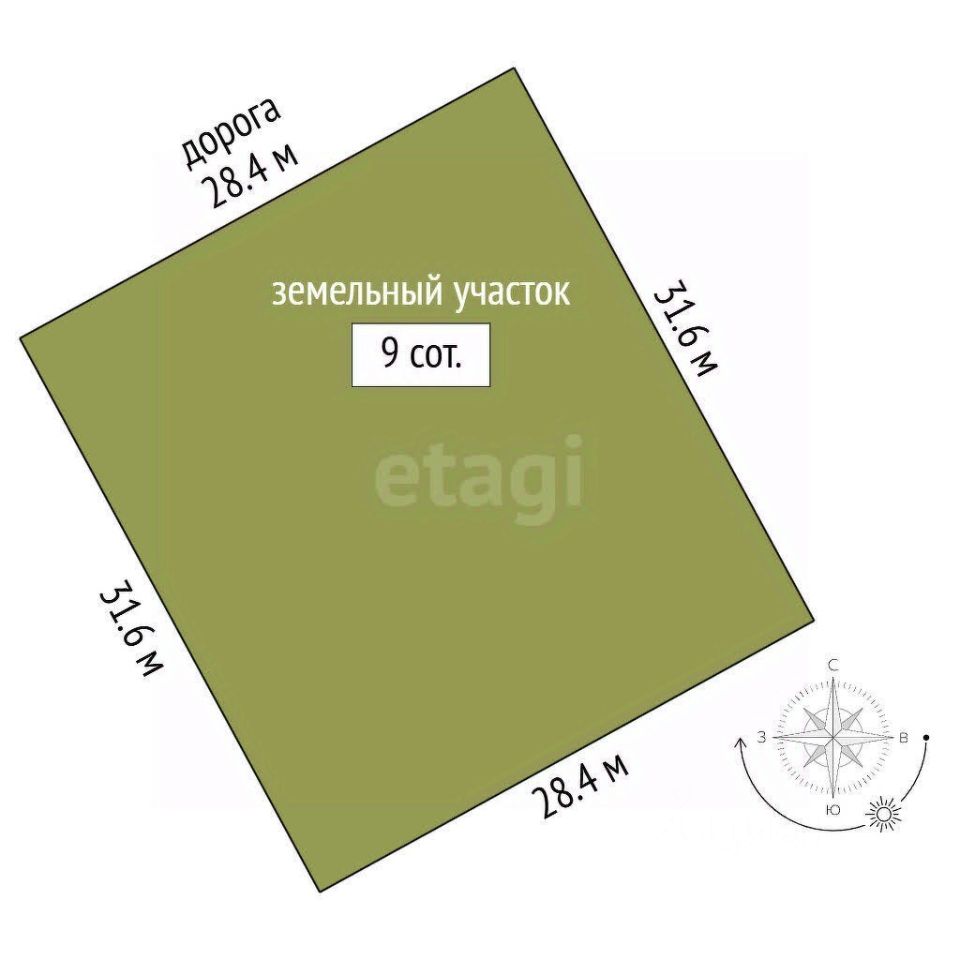 Продам земельный участок, общей площадью 9 соток, участок имеет правильную прямоугольную форму. Участок не разработан, Подьезд к участку-грунтовая дорога. Столб электричества у участка, счетчика нет. Газ есть в населенном пункте.