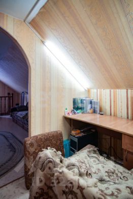 На первом этаже кухня, гостиная, спальня, сан. узел и рабочий кабинет.