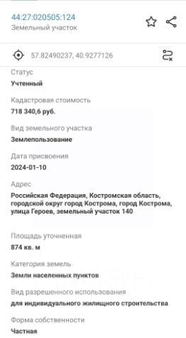 Кадастровый номер 44:27:020505:124.