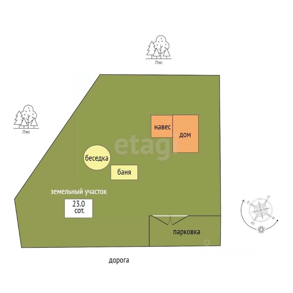 - Просторный участок граничит с лесом, что создает уединение и возможность для отдыха на природе.