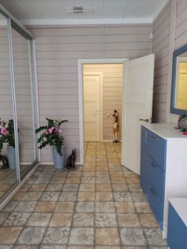 Доброго времени, уважаемый покупатель! Предлагаю к приобретению уютный загородный дом в стиле прованс 2016 года постройки в деревне Калинино по Нерехтской трассе. 10 минут от ТРЦ РИО ( 12 км). Дом выполнен по технологии каркасно-обшивные дома : наружная доска (имитация бруса 246мм) -базальтовая плита 150 мм - внутренняя доска 185 мм. Дом расположен на возвышенном месте. Фундамент свайно-ленточный. Крыша металлочерепица с водосточной системой. Коммуникации : центральные газоснабжение , электроснабжение, водоснабжение. При вводе водопровода в дом установлена многоступенчатая система водоочищения с накопительной емкостью на куб. Вода после очистки практически питьевая - что увеличивает срок службы смесителей и кранов, системы отопления и бытовых приборов. Система отопления представляет собой 2 контурный газовый котел, радиаторы и теплые полы в местах кафельного покрытия (прихожая, кухня, санузлы). Канализация - 2 переливных колодца по 3 кольца. Большая облагороженная придомовая территория с фруктовыми и декоративными насаждениями. На территории имеется 2 хозблока , один из которых с проведенным электрическим отоплением, зона барбекю и зона отдыха. Территория обнесена забором из профлиста с трех сторон с двумя распашными воротами. Четвертая сторона - деревянный забор. В доме 3 комнаты: 2 спальни по 12 кв.м и кухня-гостинная 36 кв.м, большая прихожая с 2 окнами, 2 санузла с окнами, сауна с печью, которая топиться дровами из хозблока. Осветительные приборы, шторы и часть мебели остается новым собственникам: в прихожей - 2 шкафа -купе, зона прихожей, комод; кухонный гарнитур, остальное по договоренности. Чтобы почувствовать атмосферу нашего дома и влюбиться в него , приходите на просмотр. Торг обсуждается на месте. Подходит под ипотеку "готовое жилье". По интересующим вопросам звоните.
