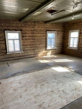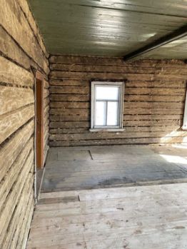 Дом рубленный. Расположен в начале деревни, под шифером . Внутренние перегородки убраны. Электричество заведено. Полы выравнены. По периметру участка, площадью 14 соток, проведена дренажная труба.