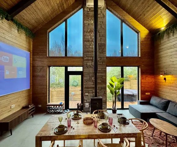 Дом для аренды посуточно: Расположение: всего в 7 минутах от города, в живописной природной зоне, идеальной для отдыха и восстановления. Удобства: Кухня: Современная кухня, оборудованная всей необходимой техникой: холодильником, плитой, микроволновой печью, посудомоечной машиной, а также полноценным набором посуды для приготовления и подачи еды. Гостиная: Просторная гостиная с телевизором, комфортным диваном и столом для общей трапезы или вечерних посиделок. На улице: Терраса: Большая терраса с видом на природу, где можно насладиться утренним кофе или вечерними посиделками. Барбекю зона: Специально оборудованная зона для барбекю, идеальна для вечерних встреч с друзьями. Парковка: Бесплатная парковка на территории для 3 автомобилей. Дополнительные удобства: Бесплатный Wi-Fi Кондиционеры и отопление. Доступность: Неподалеку находятся магазины, рестораны и достопримечательности, что обеспечивает удобство при необходимости. Этот дом станет отличным выбором для семейной поездки или дружеской компании, позволяя наслаждаться комфортным отдыхом.